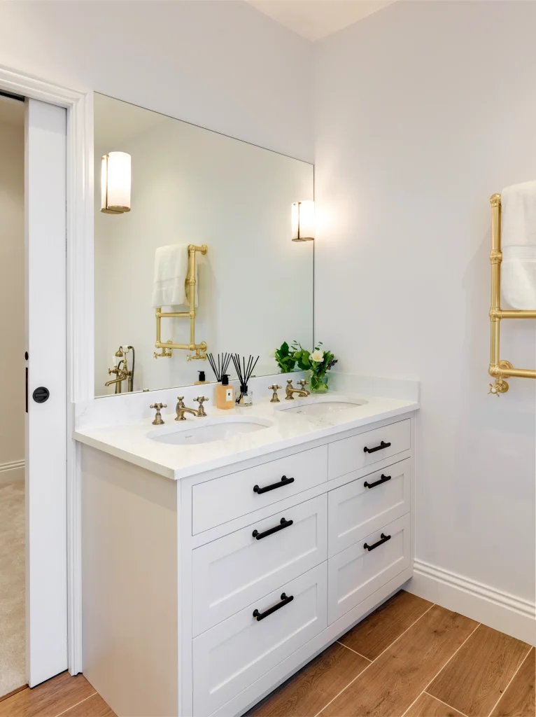 Upstairs, a luxurious master suite is complemented by three additional bedrooms, a home gym, a study, and a custom-designed “pooch’s palace” – a dedicated space for the family’s beloved dog. Every element, from bespoke joinery to FF&E selection, was curated to ensure a harmonious and elegant living environment. The result is a warm, stylish, and highly functional home, tailored to the needs of its owners.