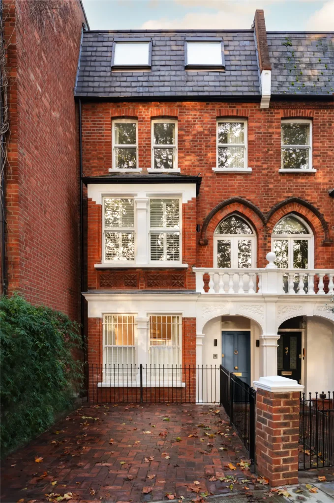 A thoughtfully designed rear extension, featuring a striking roof lantern and heritage steel doors, floods the kitchen and living areas with natural light, creating a seamless connection to the beautifully landscaped garden. The open-plan layout was tailored to accommodate family life, with distinct zones for cooking, dining, and relaxation.