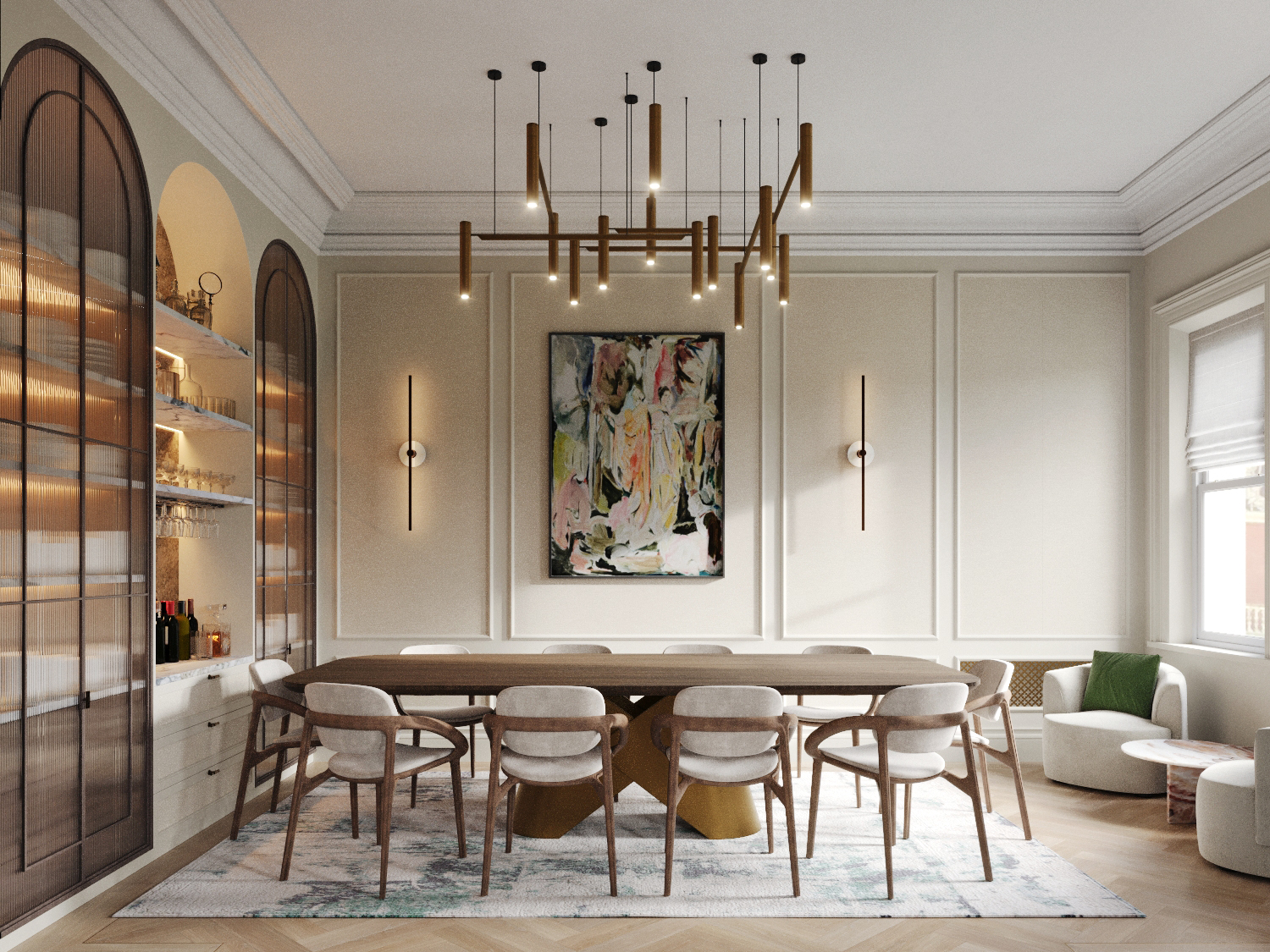 Our interior design team is focused on creating a sophisticated and inviting atmosphere, seamlessly blending classic elements with modern luxury. The client’s desire for an exceptional entertainment space is a driving force behind the design.