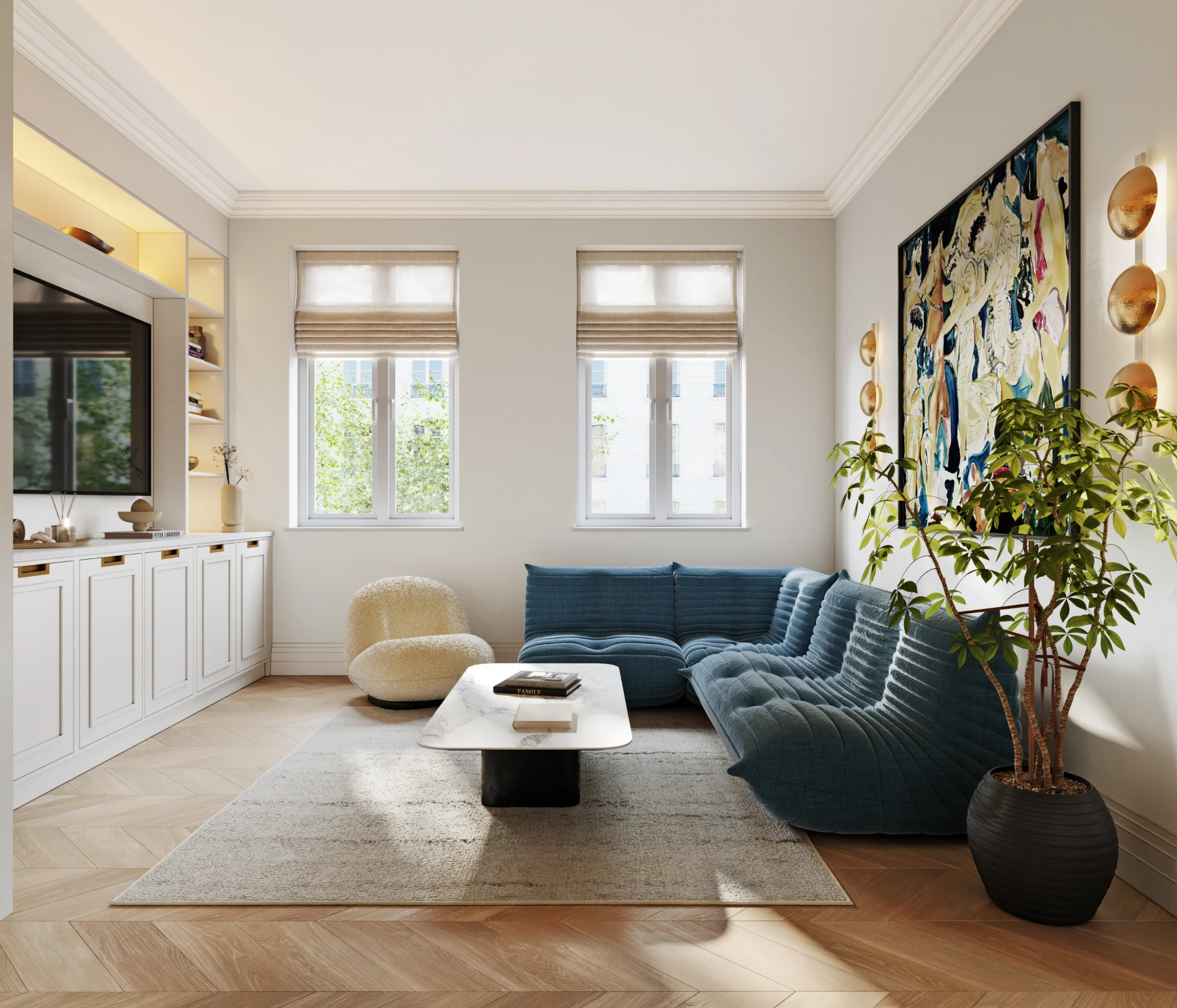 Nestled in the heart of Marylebone, this exquisite residence exemplifies contemporary luxury while respecting the grandeur of its historic setting. Project London was tasked with transforming the apartment into an elegant yet functional space, balancing structural enhancements with refined interior design.