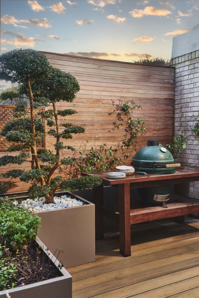 Careful planning and coordination were required to resolve the terrace works, particularly in relation to privacy, drainage and neighbouring properties, but the result is a sociable indoor-outdoor space that feels both intimate and expansive. Landscaping continues the wider design language, with structured planting and bonsai creating a natural dialogue between the interior and exterior.